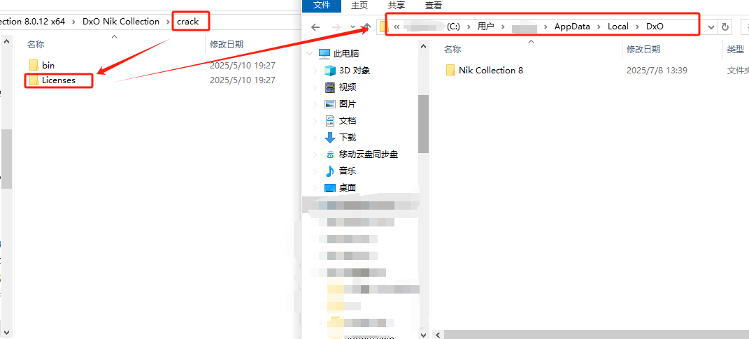 将Licenses文件夹复制到C:\Users\用户名\AppData\Local\DxO\